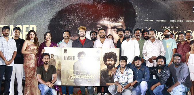 எஸ்.ஆர்.புரொடக்ஷன்ஸ் சார்பில் பி.ஜெகதீஸ் தயாரிப்பில், ரங்கோலி பட இயக்குநர் வாலி மோகன் தாஸ் இயக்கத்தில், மலையாள நடிகர் ஷேன் நிகம், கலையரசன், நிஹாரிகா நடிப்பில், புதுமையான ஆக்சன் டிராமாவாக உருவாகியுள்ள திரைப்படம் ’மெட்ராஸ்காரன்’. விரைவில் திரைக்கு வரவுள்ள இப்படத்தின் டீசர் வெளியீட்டு விழா சென்னையில் படக்குழுவினருடன் திரைப்பிரபலங்கள் கலந்துகொள்ள, பத்திரிக்கை ஊடக நண்பர்கள் முன்னிலையில் நடைபெற்றது.